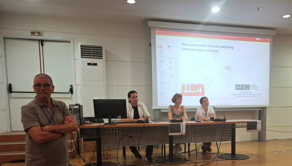 Επιπλέον, ο αντιπρόεδρος του ΕΛΙΒΙΠ παρουσίασε την τρέχουσα κατάσταση της ελληνικής εκδοτικής βιομηχανίας βιβλίου και την εθνική πολιτική βιβλίου, όπως αυτή επανεκκινεί πιο συστηματικά μετά την ίδρυση του ΕΛΙΒΙΠ. Πιο συγκεκριμένα, ο Δρ. Παναγιώτης Κάπος παρουσίασε το νέο ίδρυμα για το βιβλίο και τον πολιτισμό στη διεθνή κοινότητα, τις δράσεις του ΕΛΙΒΙΠ όπως το μεταφραστικό πρόγραμμα Greeklit που επανεκκίνησε δυναμικά και πλέον σε στέρεες βάσεις, τη Διεθνή Έκθεση Βιβλίου Θεσσαλονίκης, ενώ αναφέρθηκε στην ποικιλομορφία και στις ιδιαιτερότητες του ελληνικού εκδοτικού τοπίου, αλλά και στη γενικότερη ποιότητα του ελληνικού βιβλίου που αποτυπώνεται τόσο στον θεματικό πλουραλισμό όσο και στην αισθητική-τυπογραφική-μεταφραστική αρτιότητα.