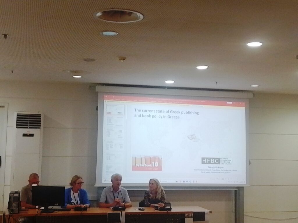 Το Ελληνικό Ίδρυμα Βιβλίου και Πολιτισμού εκπροσώπησε ο αντιπρόεδρός του Δρ. Παναγιώτης Κάπος, ο οποίος με την ιδιότητα του Ερευνητή Επικοινωνίας, Μέσων και Πολιτισμού παρουσίασε την επιστημονική εισήγηση “Glocal Publishing, a strategy for visionary book publishers”, μια στρατηγική που μπορεί να δώσει νέες προοπτικές στην εκδοτική βιομηχανία βιβλίου, ιδιαίτερα σ’ αυτή των «μικρών χωρών και μικρών γλωσσών» αποσκοπώντας στην εξωστρέφεια και στη βιωσιμότητα. Αναφέρθηκαν παραδείγματα από τη διεθνή και ελληνική εκδοτική πραγματικότητα, ενώ κατέστη εμφανές μέσα από τις συζητήσεις που ακολούθησαν ότι η «παγκοσμιο-τοπική» εκδοτική στρατηγική αποτελεί μια αναγκαιότητα για εκδοτικά οικοσυστήματα που προέρχονται από χώρες με μικρή γλωσσική επίδραση σε ένα εκδοτικό πεδίο όπου δεσπόζει η αγγλική γλώσσα. Επιπλέον, κατέστη εμφανές πως οι χώρες που αντιμετωπίζουν αυτή την πρόκληση μπορούν ευκολότερα να κατανοήσουν την ανάγκη για συνεργασίες, εξωστρέφεια και ανταλλαγή καλών πρακτικών προς την κατεύθυνση της ανάπτυξης της ορατότητας και της διεύρυνσης του αναγνωστικού κοινού τους. Το ΕΛΙΒΙΠ ήδη προσανατολίζεται προς τέτοιες συνεργασίες.