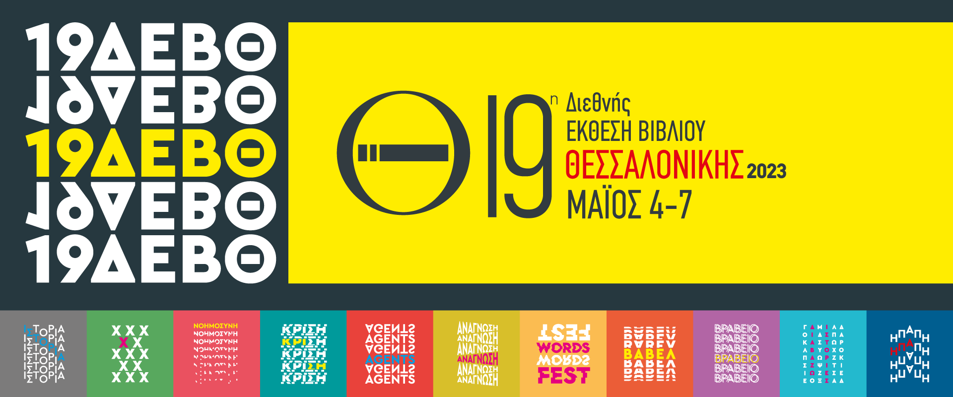 Την Πέμπτη 4 Μαΐου η 19η ΔΕΒΘ ανοίγει τις πύλες της για το αναγνωστικό κοινό, υποσχόμενη μια τετραήμερη γιορτή του βιβλίου που θέτει ψηλά τον πήχη. Σε μια διοργάνωση μεγαλύτερη από κάθε άλλη χρονιά, η φετινή ΔΕΒΘ έχει ως στόχο να προσφέρει στο κοινό της μια ακόμη πιο διευρυμένη οπτική γύρω από τον χώρο του βιβλίου, τις ποικίλες καλλιτεχνικές εκφράσεις του καθώς και την επαγγελματική δραστηριότητα γύρω από αυτό.